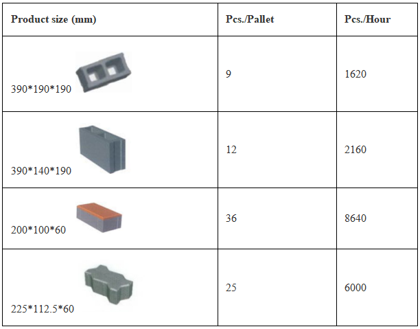 Mogu se proizvesti razni vanjski zidni blokovi, unutarnji zidni blokovi, zidni blokovi cvijeća, podni blokovi, blokovi bermera, blokovi za blokiranje i blokovi na cesti. Sa lice mix dio također može proizvesti šarene pločice pločnika.